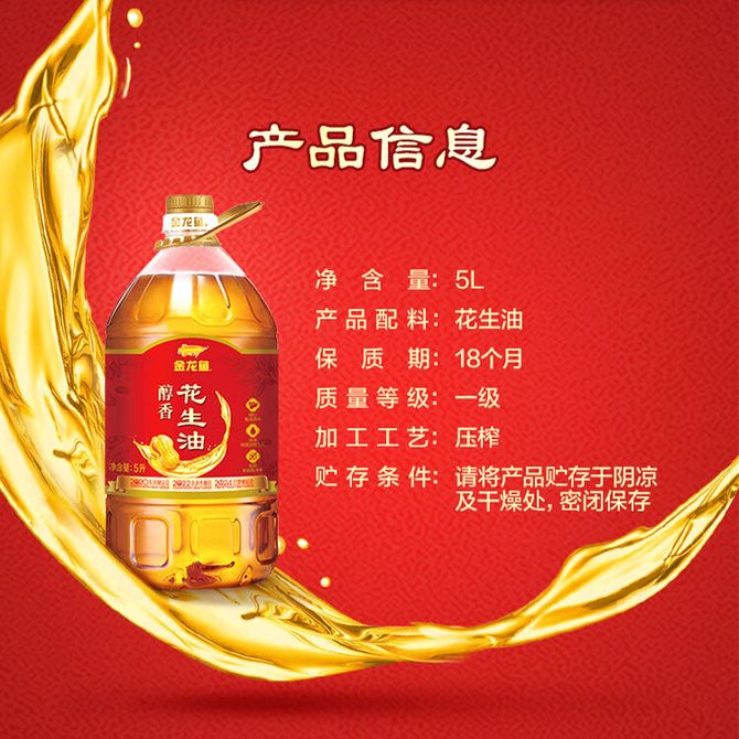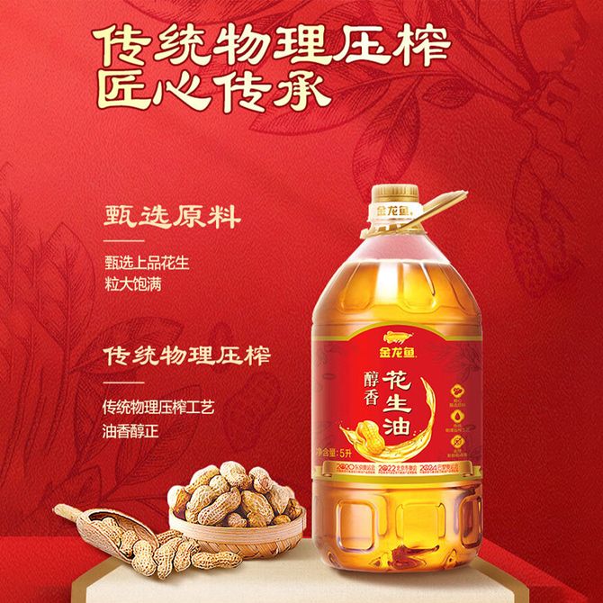 金龙鱼 醇香花生油5L 物理压榨 压榨花生油5L 醇香型厨房炒菜家用油