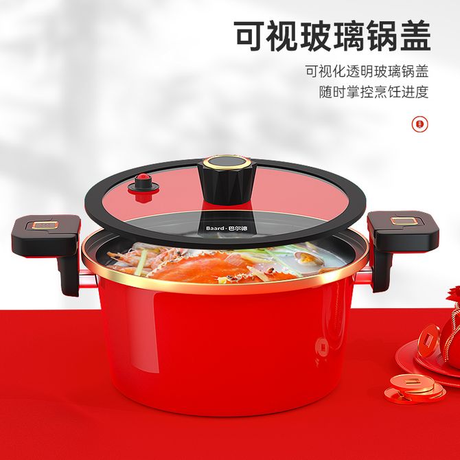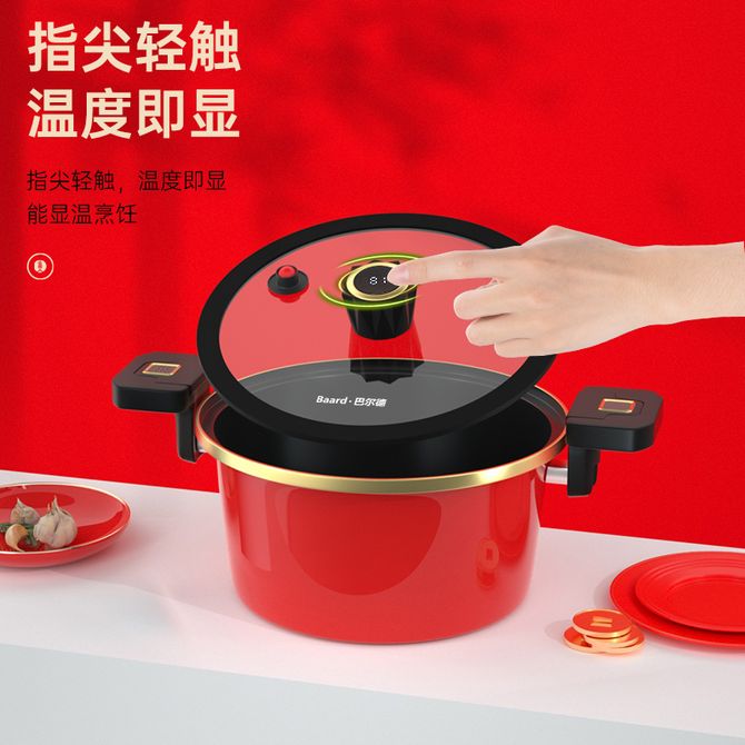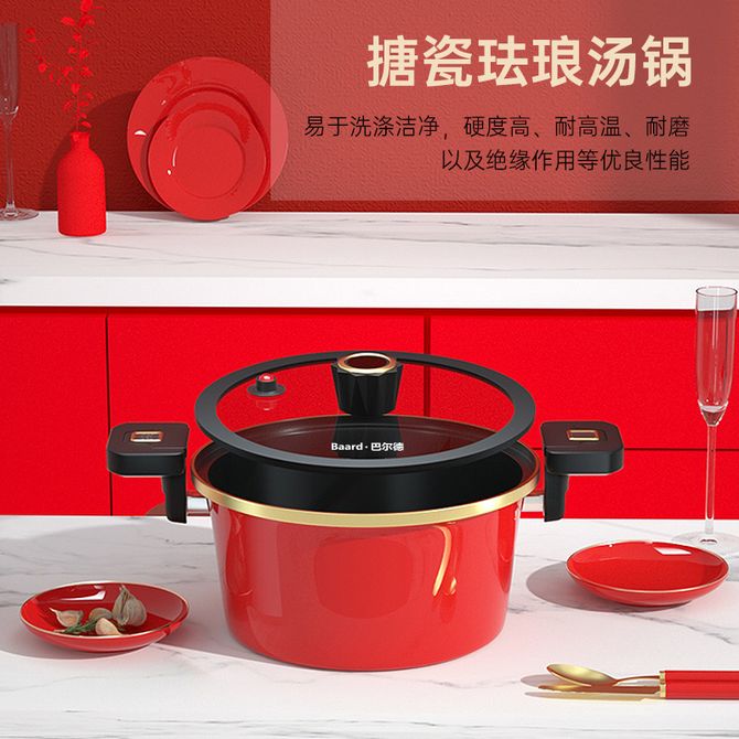 巴尔德 正品珐琅微压锅汤锅26cm家用多功能抗菌蒸炖煮锅-BD052