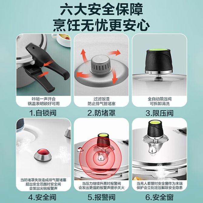组合销售 产品介绍 产品规格 售后服务 产品咨询 发现好货 爱仕达/ASD 高压锅燃气明火防爆六保险5.3L铝合金22CM家用压力锅YL22S2WG 5500 里程 炊大皇(COOKER KING) 压力锅高压锅7重安全防爆8L适合4-8人燃气电磁炉通用 24cm 12200 里程 双喜 华康装铝压力锅 22CM/5.5L高压力密封圈防爆锅具明火专用高压锅LM06C22 5200 里程 双喜小康装铝压力锅20CMLM-06C 5000 里程 爱仕达/ASD 高压锅304不锈钢六保险5.5L压力锅燃气电磁炉通用WG1822DN 9100 里程
