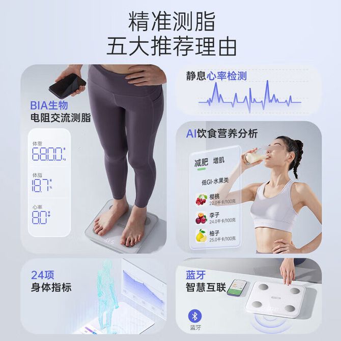 小熊/Bear 电子秤智能电子秤人体体重秤 称重秤脂肪秤精准测量智能数据 详情图片共用此款为白色,BIA生物 电阻交流测脂 24项身体指标 蓝牙智慧互联 0-180kg广域测重 兑换价格 3500 里程 会员卡别 终身白金卡 白金卡 金卡 银卡 普通卡 儿童卡 服务 由 广西自贸区京通桂达科技发展有限公司 发货并提供售后 颜色: 其他 购买数量: 件 库存件 配送地址: 立即购买 加入购物车 成功添加到购物车 关闭 购物车共有 种商品 总金额为: