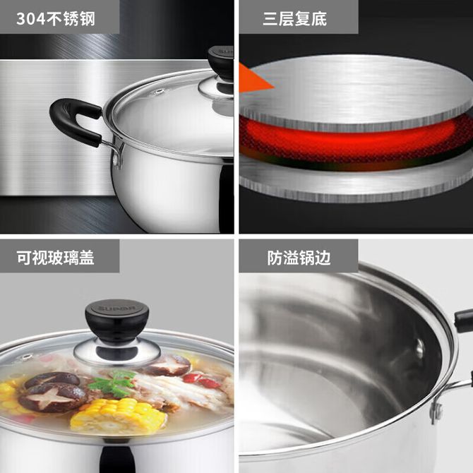 苏泊尔(SUPOR) 汤锅 不锈钢无涂层炖锅 双耳防烫煮粥煮面锅 24CM ST24H3 优质304不锈钢 一锅多用 加厚复底汤锅 三层复底 可视锅盖 防烫手柄 兑换价格 6200 里程 会员卡别 终身白金卡 白金卡 金卡 银卡 普通卡 儿童卡 服务 由 成都得之悦电子商务有限公司 发货并提供售后 颜色: 银色 购买数量: 件 库存件 配送地址: 立即购买 加入购物车 成功添加到购物车 关闭 购物车共有 种商品 总金额为:
