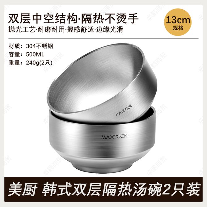 美厨(MAXCOOK) 正品304不锈钢韩式双层隔热汤碗13CM家用饭碗2只装 【2只装】耐用304不锈钢 耐磨耐用 不褪色 隔热防烫 兑换价格 1300 里程 会员卡别 终身白金卡 白金卡 金卡 银卡 普通卡 儿童卡 服务 由 卓鹏商贸生活馆 发货并提供售后 颜色: 其他 购买数量: 件 库存件 配送地址: 立即购买 加入购物车 成功添加到购物车 关闭 购物车共有 种商品 总金额为: