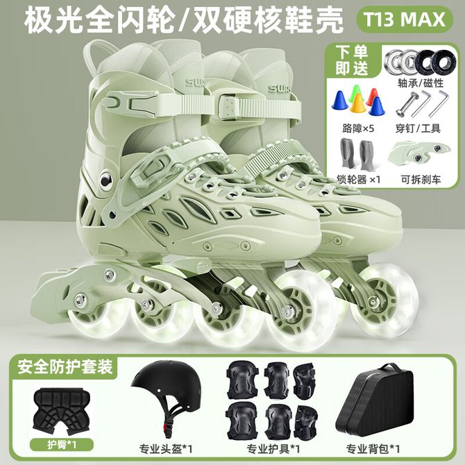 斯威(SWAY) 轮滑鞋儿童初学者溜冰鞋男女童滑轮鞋成人滑冰直排轮旱冰鞋T13MAX 原厂套装 下单请备注尺码:S(适合3-6岁)平时鞋码27-31,M(适合6-12岁)平时鞋码32-36,L(适合12岁及以上)平时鞋码37-42 兑换价格 13900 里程 会员卡别 终身白金卡 白金卡 金卡 银卡 普通卡 儿童卡 服务 由 盛为运动户外专营店 发货并提供售后 颜色: 蓝色 绿色 粉色 购买数量: 件 库存件 配送地址: 立即购买 加入购物车 成功添加到购物车 关闭 购物车共有 种商品 总金额为: