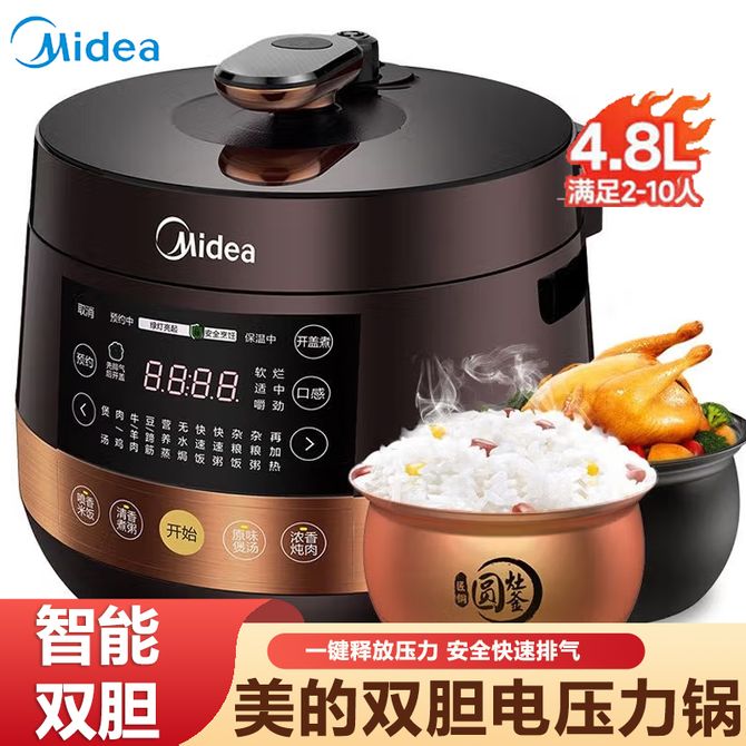 美的/Midea 电压力锅双胆高压电饭锅 家用全自动智能预约开盖煮小米粥炖汤 4.8L大容量,24小时全天候预约,一键释放压力,安全快速排气,双圆灶釜,精准控压,全新氧化盘,反向排气 兑换价格 13900 里程 会员卡别 终身白金卡 白金卡 金卡 银卡 普通卡 儿童卡 服务 由 广西桂福礼供应链管理有限公司 发货并提供售后 颜色: 其他 购买数量: 件 库存件 配送地址: 立即购买 加入购物车 成功添加到购物车 关闭 购物车共有 种商品 总金额为: