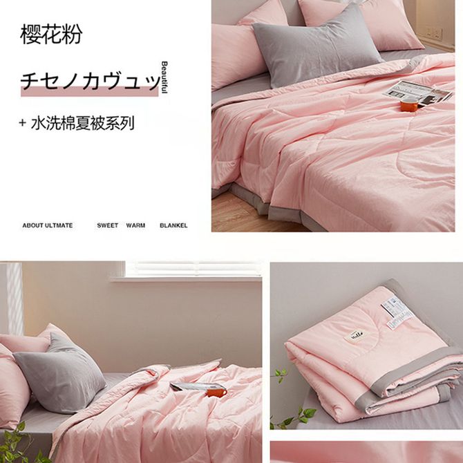 洁丽雅/Grace 纯色水洗棉夏被空调被四季通用被子夏凉被单人夏被芯可机洗 150*200cm JLY-ZRJ 樱花粉 面料材质:水洗棉(100%再生纤维素纤维) 填 充:整张羽丝棉 (100%超细旦纤维) 兑换价格 5100 里程 会员卡别 终身白金卡 白金卡 金卡 银卡 普通卡 儿童卡 服务 由 吉时雨居家生活馆 发货并提供售后 被、单尺寸: 150*200cm 颜色: 粉色 购买数量: 件 库存件 配送地址: 立即购买 加入购物车 成功添加到购物车 关闭 购物车共有 种商品 总金额为: 组合销售 产品介绍 产品规格 售后服务 产品咨询 发现好货 洁丽雅(Grace)全棉夏凉被棉花被双人空调被 纯棉被子可机洗 薄被芯 洛洛繁花 150*200cm(Grace) 6100-7400 里程 洁帛 A类零压力抗菌防螨纤维春秋四季被 3500-3900 里程 北极绒(Bejirog) 泡泡纱大豆纤维四季被 细腻温润吸湿透气不闷不燥 BJRB314 8000 里程 洁丽雅/Grace 10%大豆纤维 纤维被子 空调夏凉被 (多规格可选)CP2262柠檬青 2500-3400 里程 京东京造 暖暖大白被 100%原生纤维A类磨毛厚实保暖被子冬季被芯 4斤-6.8斤 多尺寸可选 5000-7000 里程