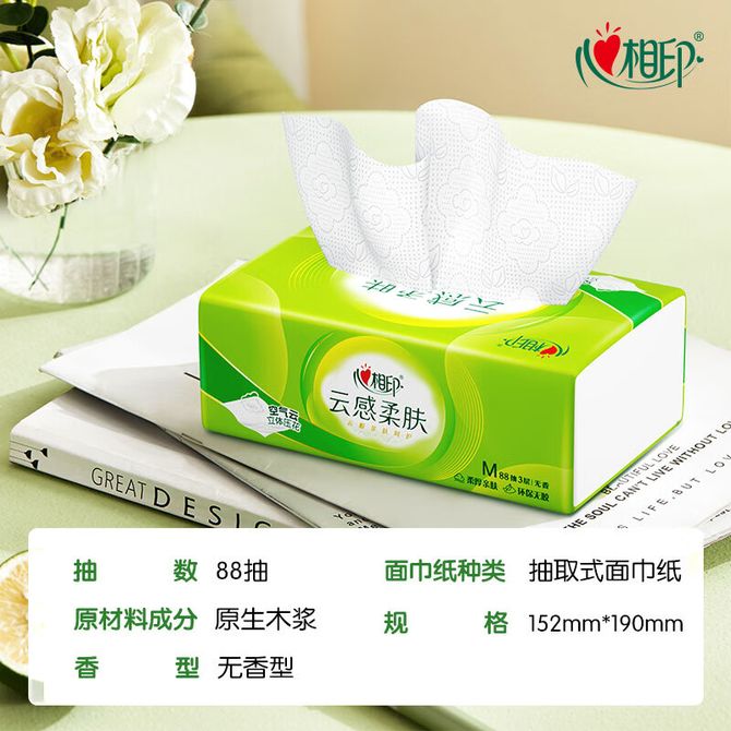 心相印 抽纸整箱纸巾3层M码加大云感立体压花卫生纸擦手纸面巾纸 箱装M码3层88抽16包 包邮 一般48小时内发出,节假日发货可能会有延迟,部分商品包装可能会进行升级,品质不变,还请多多谅解! 兑换价格 1600 里程 会员卡别 终身白金卡 白金卡 金卡 银卡 普通卡 儿童卡 服务 由 银弓家居日用专营店 发货并提供售后 包装数量: 16包 购买数量: 件 库存件 配送地址: 立即购买 加入购物车 成功添加到购物车 关闭 购物车共有 种商品 总金额为: 组合销售 产品介绍 产品规格 售后服务 产品咨询 发现好货 维达卷纸 卫生纸实惠装厕纸家用厕所纸巾手纸整箱批有芯大卷家庭装 1200-2300 里程 维达 Vinda 卷纸 140g/卷*10卷 蓝色经典3层卫生纸 1300 里程 心相印抽纸 茶语丝享系列 量贩家庭装 3层*100抽*4包(茶香 压花) 1100 里程 心相印 经典系列 二层面巾纸 180抽*6包*1提 1100 里程 维达Vinda 超韧系列抽纸(3层*130抽*6包) 原生木浆卫生餐巾纸婴儿面巾纸 6包优惠装 1100 里程