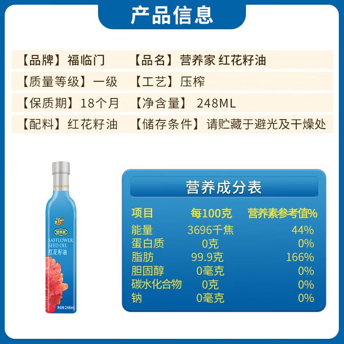福临门 营养家红花籽油248ml 压榨一级红花籽油 兑换价格 2000 里程 会员卡别 终身白金卡 白金卡 金卡 银卡 普通卡 儿童卡 服务 由 全食行 发货并提供售后 油品规格: 248ml 购买数量: 件 库存件 配送地址: 立即购买 加入购物车 成功添加到购物车 关闭 购物车共有 种商品 总金额为: 组合销售 产品介绍 产品规格 售后服务 产品咨询 发现好货 长寿花 金胚玉米油食用油非转基因压榨一级 1.8L 2200 里程 珍佰粮菜籽油5L 5500 里程 福临门 一级大豆油900ML/瓶 优质家用食用油 1100 里程 福临门 家香味食用油 沂蒙土榨 花生仁油900ml 1600 里程 金龙鱼 浓香花生油5L 大桶装物理压榨一级厨房烹饪炒菜植物油粮油家庭食用油 浓香花生油食用油 5000 里程
