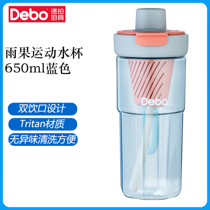 德铂(Debo) 雨果运动水杯650ml 大容量男女塑料杯子户外车载随行杯弹盖双饮水杯学生运动健身便携 (详情图片共用-蓝色)耐高温 双饮口设计 Tritan材质 无异味 清洗方便 车载随行 兑换价格 2100 里程 会员卡别 终身白金卡 白金卡 金卡 银卡 普通卡 儿童卡 服务 由 广西桂雅文化传媒有限公司 发货并提供售后 颜色: 蓝色 购买数量: 件 库存件 配送地址: 立即购买 加入购物车 成功添加到购物车 关闭 购物车共有 种商品 总金额为: 组合销售 产品介绍 产品规格 售后服务 产品咨询 发现好货 乐扣乐扣(LOCK&LOCK)塑料水杯男士女士茶杯户外运动杯子便携随手杯学生茶瓶防漏创意水瓶HLC644系列 1500 里程 绿珠lvzhu 双层玻璃杯 创意便携商务大容量 茶水分离过滤办公泡茶水杯子200ml 带杯套 B730木纹 2700 里程 德铂(Debo)特尔斯茶水分离双层玻璃杯 旅行茶杯办公水杯 DEP-746 4800 里程 如艺 格拉斯水晶杯家用泡茶杯喝水杯(颜色随机) 1100 里程 天喜(TIANXI) 凉水壶冷水壶家用凉水瓶耐热大容量玻璃水壶花茶壶【透明色1800ml】 2000 里程