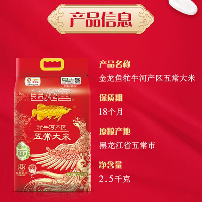 金龙鱼 牤牛河产区五常大米2.5KG/袋 精选优质东北五常大米 粒粒饱满晶莹剔透口感绵密 优质大米