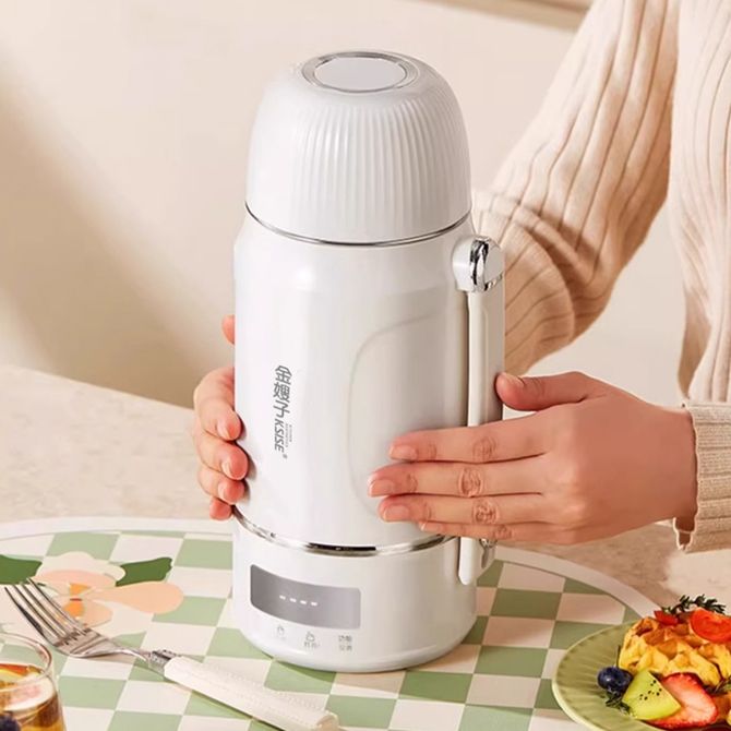1200ml大容量;双重密封技术,密封携带更防漏;双层不锈钢材质,真空保温,锁温更强大;直饮杯盖,烧水饮水二合一;高速发热盘,500ml,5分钟快速加热;6小时恒温保暖,40-100℃随心调节;四档调温