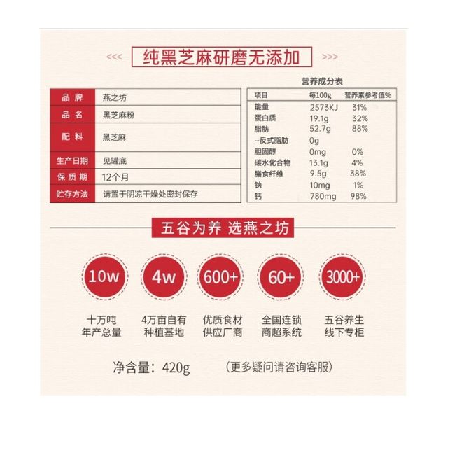 燕之坊 黑芝麻粉420g纯黑芝麻无添加早餐代餐粉杂粮无糖 黑芝麻粉420g 兑换价格 2200 里程 会员卡别 终身白金卡 白金卡 金卡 银卡 普通卡 儿童卡 服务 由 烁烁食品店 发货并提供售后 规格: 罐装 购买数量: 件 库存件 配送地址: 立即购买 加入购物车 成功添加到购物车 关闭 购物车共有 种商品 总金额为: 组合销售 产品介绍 产品规格 售后服务 产品咨询 发现好货 西麦 即食燕麦片1000g桶装营养早餐谷物代餐无额外添加蔗糖 1400 里程 燕之坊 黑八宝450g 黑芝麻糊桑葚奇亚籽芝麻核桃黑豆早餐代餐粉 即食速溶 3000 里程 西麦 有机即食高蛋白营养早餐冲饮谷物代餐纯燕麦片880g 1700 里程 阴山优麦即食纯燕麦片 全胚芽裸燕麦 营养早餐谷物 膳食纤维 1000g 罐装 2400 里程 燕之坊 红豆薏米枸杞粉 红小豆赤小豆薏米薏仁代餐粉 500g 低卡饱腹 3500 里程