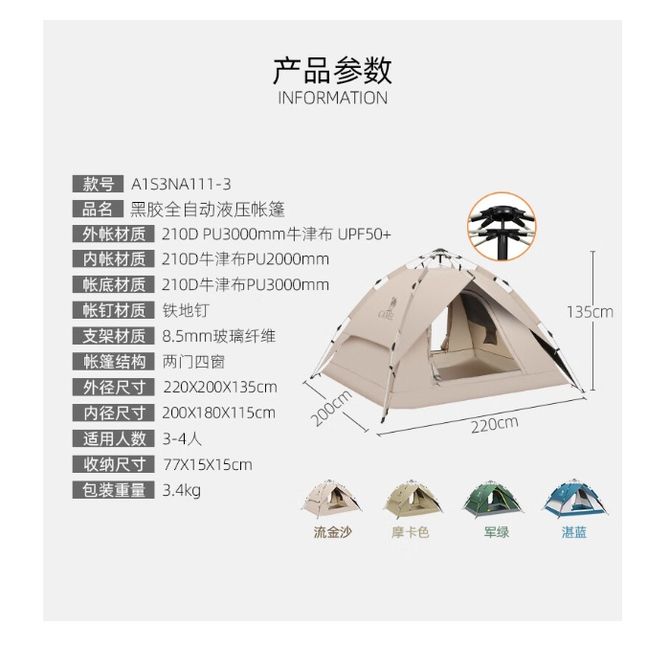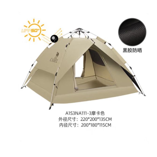骆驼/Camel 户外黑胶防晒帐篷全自动便携式折叠加厚防雨露营装备 A1S3NA111-3 摩卡色 A1S3NA111-3 摩卡色 兑换价格 20300 里程 会员卡别 终身白金卡 白金卡 金卡 银卡 普通卡 儿童卡 服务 由 四季枫户外用品店 发货并提供售后 颜色: 卡其色 购买数量: 件 库存件 配送地址: 立即购买 加入购物车 成功添加到购物车 关闭 购物车共有 种商品 总金额为: