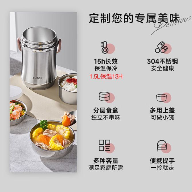 苏泊尔(SUPOR) 三层保温饭盒真空保温提锅不锈钢保温桶学生饭盒便当盒KFV15AE10 长效保温 全钢分层 兑换价格 6400 里程 会员卡别 终身白金卡 白金卡 金卡 银卡 普通卡 儿童卡 服务 由 人人余厨具专营店 发货并提供售后 颜色: 银色 购买数量: 件 库存件 配送地址: 立即购买 加入购物车 成功添加到购物车 关闭 购物车共有 种商品 总金额为:
