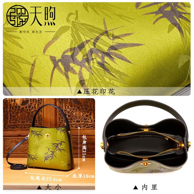 天煦/PMSIX 包包女包复古竹叶印花手提包新中式国风单肩包大气斜挎旗袍包 P120739 非遗绫绢防水面料,时髦质感五金,柔韧手提设计,多隔层收纳。 兑换价格 22600 里程 会员卡别 终身白金卡 白金卡 金卡 银卡 普通卡 儿童卡 服务 由 优客优品 发货并提供售后 颜色: 黑色 绿色 棕色 购买数量: 件 库存件 配送地址: 立即购买 加入购物车 成功添加到购物车 关闭 购物车共有 种商品 总金额为: