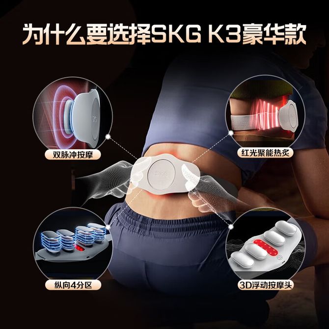 SKG 腰部按摩仪腰部按摩器暖宫腰带热敷仪加热按摩仪实用礼物送长辈父母送妈妈送女朋友 双脉冲深层按摩,大面积热敷 兑换价格 14400 里程 会员卡别 终身白金卡 白金卡 金卡 银卡 普通卡 儿童卡 服务 由 广西自贸区京通桂达科技发展有限公司 发货并提供售后 颜色: 其他 购买数量: 件 库存件 配送地址: 立即购买 加入购物车 成功添加到购物车 关闭 购物车共有 种商品 总金额为: 组合销售 产品介绍 产品规格 售后服务 产品咨询 发现好货 港德 颈椎按摩器仪背部按摩披肩RD-008 3500 里程 港德(SUNWTR)筋膜枪 肌肉放松仪按摩仪 TY-717 4400 里程 亚摩斯/Amos 多功能筋膜枪 小巧轻盈携带方便智能 运动护理修复神器AS-JM256 3900 里程 港德 迷你便携筋膜枪 肌肉放松按摩器颈膜枪筋膜机颈腿部腰部按摩器RD-718 3600 里程 倍轻松(breo)眼部按摩器 眼睛按摩仪眼保仪 恒温热敷眼罩 EM 003 10400 里程
