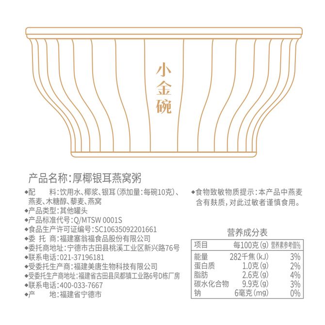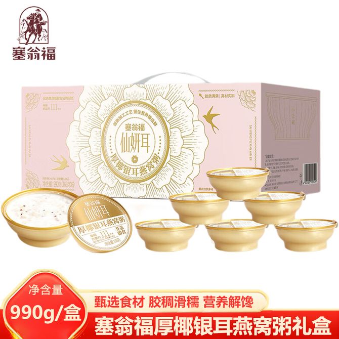 塞翁福 厚椰银耳燕窝粥礼盒990g 鲜炖厚椰银耳燕窝粥 口感揭盖即食
