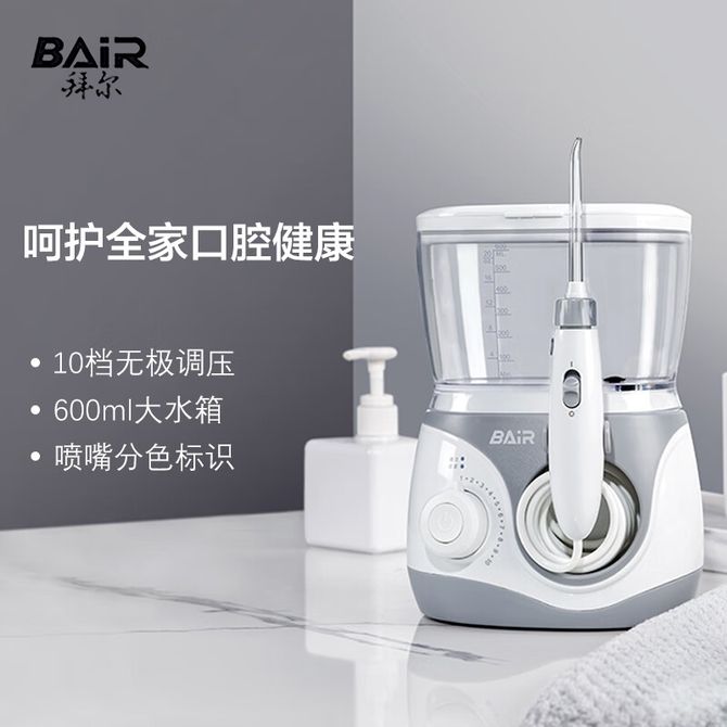 拜尔(BAIR) 家用式冲牙器H6白色 600ML大水箱 全家通用,3色标准喷嘴 ◆ 10档无极调压 ◆ IPX7级防水 ◆ 1900次/分钟高频脉冲 ◆ 0.6mm细腻高压水柱 兑换价格 14400 里程 会员卡别 终身白金卡 白金卡 金卡 银卡 普通卡 儿童卡 服务 由 恒百生活馆 发货并提供售后 颜色: 白色 购买数量: 件 库存件 配送地址: 立即购买 加入购物车 成功添加到购物车 关闭 购物车共有 种商品 总金额为: 组合销售 产品介绍 产品规格 售后服务 产品咨询 发现好货 小米 声波电动牙刷家用男女高频振动充电式防水牙刷 T300标准版 4400 里程 飞利浦/Philips 电动牙刷头HX9021适配HX6511/HX6730/HX6761/HX3226/ 2400 里程 飞利浦/Philips 电动牙刷 HX2431 成人声波震动牙刷 净力刷 2种模式 温和清洁 电动牙刷 双色可选 6500 里程 小米 米家声波电动牙刷 声波洁牙柔感护龈 超长续航 T200蓝色 4400 里程 小米 声波电动牙刷家用电牙刷男女士牙刷高频振动充电式防水牙刷牙齿清洁 4400 里程