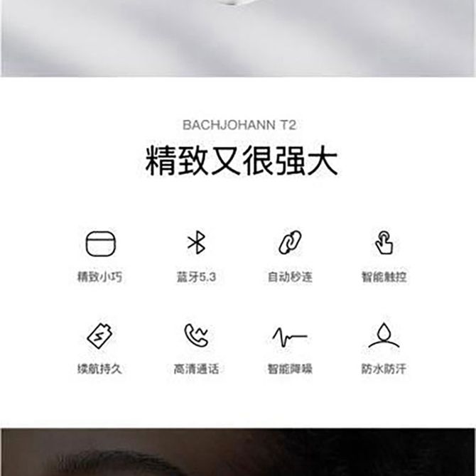 巴赫约翰/bachjohann 无线蓝牙耳机音乐耳机蓝牙5.3半入耳式自动秒连智能触控 T2白色 续航持久 智能降噪 兑换价格 5200 里程 会员卡别 终身白金卡 白金卡 金卡 银卡 普通卡 儿童卡 服务 由 贝洛美智能科技精品馆 发货并提供售后 颜色: 白色 购买数量: 件 库存件 配送地址: 立即购买 加入购物车 成功添加到购物车 关闭 购物车共有 种商品 总金额为: 组合销售 产品介绍 产品规格 售后服务 产品咨询 发现好货 雷摄 运动蓝牙耳机无线跑步超长续航待机半入耳降噪高端健身2024新款 BT-03半入耳 1400 里程 飞利浦/Philips 蓝牙耳机耳夹式无线开放挂耳式骨传导概念不入耳运动跑步通话降噪适用于华强北蓝牙耳机TAT3469 6200 里程 魔声 (MONSTER)Open Ear AC600骨传导概念蓝牙耳机开放式无线夹耳式不入耳式耳夹式运动通话降噪手机通用 3700 里程 飞利浦(PHILIPS)真无线蓝牙耳机跑步运动耳机防水防汗TAT1168 8700 里程 漫步者EDIFIER 真无线蓝牙耳机Zero Air月白 通话降噪半入耳低延游戏手机音乐耳塞 5200 里程