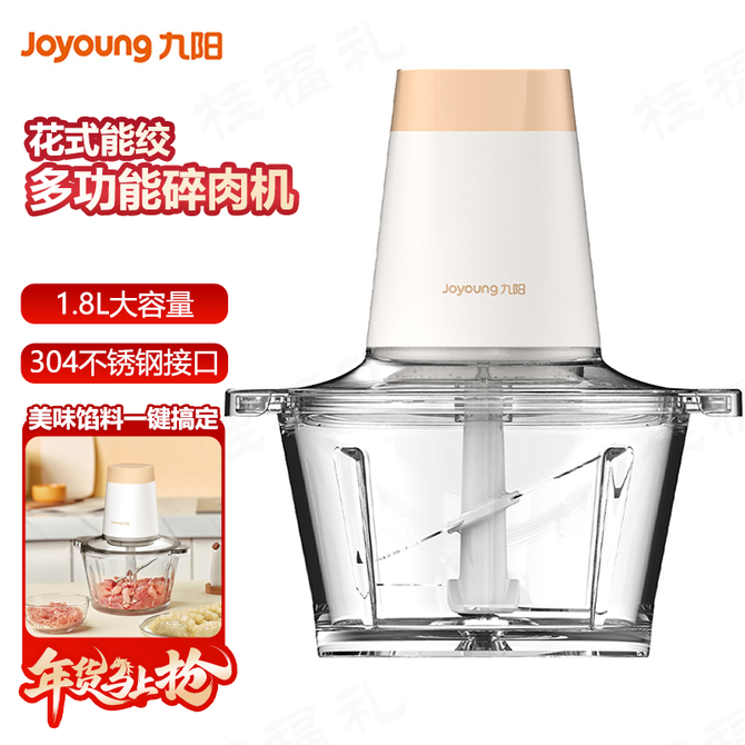 九阳/Joyoung 多功能料理机绞肉电动辅食机搅拌绞馅切菜研磨碎肉机易清洗 1.8L大容量 304不锈钢接口 双层四维刀片 300W强力电机 6mm加厚玻璃碗 一键单档调控 兑换价格 5700 里程 会员卡别 终身白金卡 白金卡 金卡 银卡 普通卡 儿童卡 服务 由 广西桂福礼供应链管理有限公司 发货并提供售后 颜色: 其他 购买数量: 件 库存件 配送地址: 立即购买 加入购物车 成功添加到购物车 关闭 购物车共有 种商品 总金额为:
