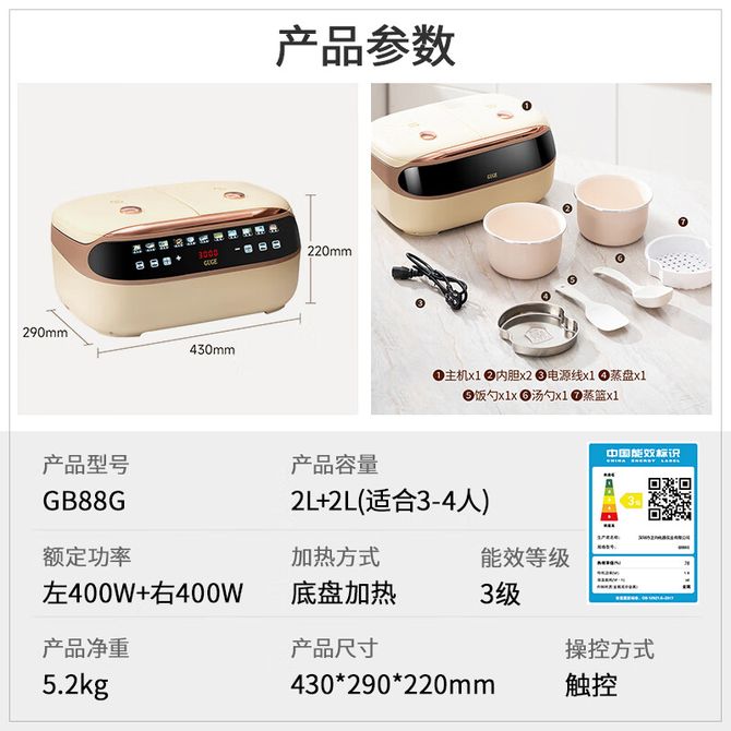 谷格/GUGE 微电脑电饭煲 GB88G 微电脑电饭煲 GB88G 兑换价格 24400 里程 会员卡别 终身白金卡 白金卡 金卡 银卡 普通卡 儿童卡 服务 由 海礼网电器专卖店 发货并提供售后 颜色: 白色 购买数量: 件 库存件 配送地址: 立即购买 加入购物车 成功添加到购物车 关闭 购物车共有 种商品 总金额为: 组合销售 产品介绍 产品规格 售后服务 产品咨询 发现好货 苏泊尔(SUPOR) 电饭煲电饭锅4L大容量 不粘内胆4-6个人前置大屏面板24小时预约上蒸下煮多功能家用智能SF40FC0063 7700 里程 美菱/MELNG 电饭煲3L触控式预约定时MF-LC3005 4400 里程 美的(Midea) 电饭煲 家用3L智能预约多功能电饭锅小型1-4人煮饭锅智能 白色 MB-FB30M161 7800 里程 康佳/Konka 迷你电饭煲小电饭锅2L容量智能温控12小时预约煮饭煮粥锅 4800 里程 美的/Midea 电饭煲电饭锅3-4个人家用4L大容量聚能釜金属机身大火力米饭锅【升级焖香阀】RE417 8700 里程
