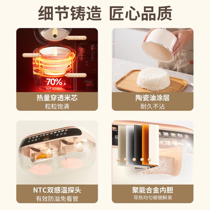 组合销售 产品介绍 产品规格 售后服务 产品咨询 发现好货 苏泊尔(SUPOR) 电饭煲电饭锅4L大容量 不粘内胆4-6个人前置大屏面板24小时预约上蒸下煮多功能家用智能SF40FC0063 7700 里程 美菱/MELNG 电饭煲3L触控式预约定时MF-LC3005 4400 里程 美的(Midea) 电饭煲 家用3L智能预约多功能电饭锅小型1-4人煮饭锅智能 白色 MB-FB30M161 7800 里程 康佳/Konka 迷你电饭煲小电饭锅2L容量智能温控12小时预约煮饭煮粥锅 4800 里程 美的/Midea 电饭煲电饭锅3-4个人家用4L大容量聚能釜金属机身大火力米饭锅【升级焖香阀】RE417 8700 里程