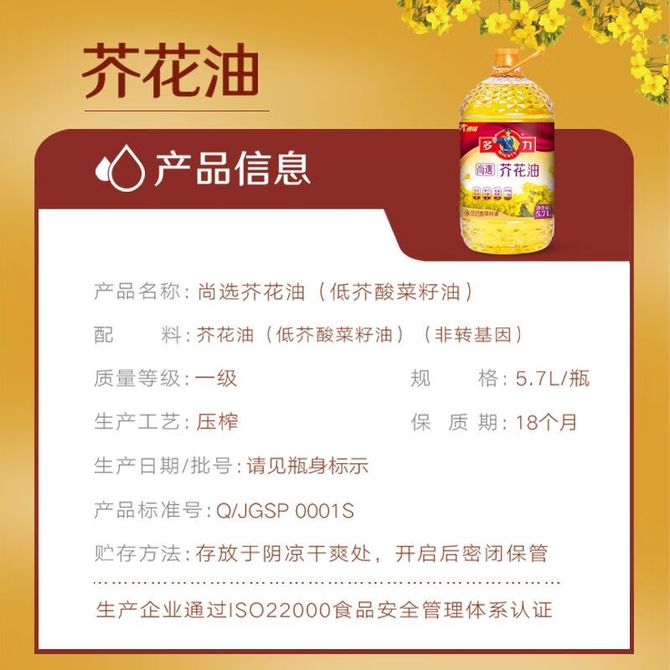 多力/Mighty 尚选低芥酸芥花油菜籽油5.7L