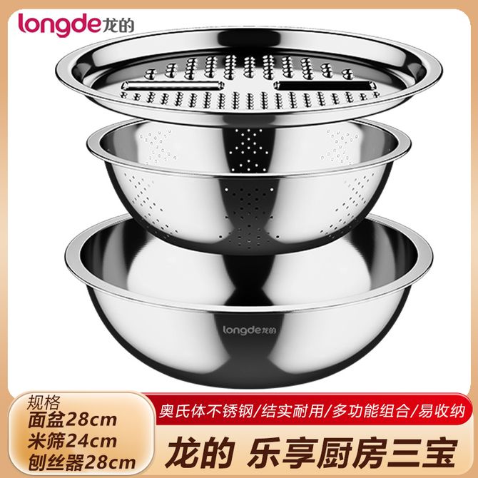 龙的/Longde 乐享厨房三宝 不锈钢刨丝器沥水盘洗菜盘厨房料理三件套 (面盆28cm、米筛24cm、刨丝器28cm)奥氏体不锈钢 容易清洗 重叠收纳 大容量 一套多用 多功能组合 兑换价格 1700 里程 会员卡别 终身白金卡 白金卡 金卡 银卡 普通卡 儿童卡 服务 由 广西桂雅文化传媒有限公司 发货并提供售后 颜色: 其他 购买数量: 件 库存件 配送地址: 立即购买 加入购物车 成功添加到购物车 关闭 购物车共有 种商品 总金额为: