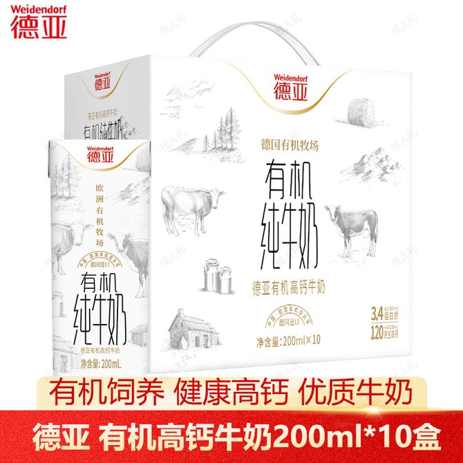 德亚 有机高钙牛奶礼盒200ml*10 甄选德国进口 优质奶源 有机牛奶 学生青少年营养高钙牛奶 礼盒装 200ml*10盒 兑换价格 2600 里程 会员卡别 终身白金卡 白金卡 金卡 银卡 普通卡 儿童卡 服务 由 广西桂人礼互联网科技有限公司 发货并提供售后 规格: 礼盒 购买数量: 件 库存件 配送地址: 立即购买 加入购物车 成功添加到购物车 关闭 购物车共有 种商品 总金额为: 组合销售 产品介绍 产品规格 售后服务 产品咨询 发现好货 蒙牛 特仑苏纯牛奶苗条装250ml×12盒 2900 里程 三元 经典小方白全脂纯牛奶250ml*24盒牛奶 整箱 3400 里程 伊利金典纯牛奶250ml*12盒整箱 2200 里程 伊利 金典纯牛奶整箱 250ml*12盒 3.6g乳蛋白 原生高钙 礼盒装 1800 里程 特仑苏 新日期纯牛奶250ml*12盒 3.6g乳蛋白 礼盒装 京东/顺丰发货 2400 里程