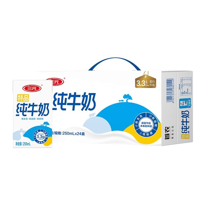 三元(SAN YUAN) 特品方白全脂纯牛奶250ml*24盒 认证牧场 品质保证 营养健康 兑换价格 2600 里程 会员卡别 终身白金卡 白金卡 金卡 银卡 普通卡 儿童卡 服务 由 澳菲类优选 发货并提供售后 规格: 组合 购买数量: 件 库存件 配送地址: 立即购买 加入购物车 成功添加到购物车 关闭 购物车共有 种商品 总金额为: 组合销售 产品介绍 产品规格 售后服务 产品咨询 发现好货 蒙牛 特仑苏纯牛奶苗条装250ml×12盒 2900 里程 三元 经典小方白全脂纯牛奶250ml*24盒牛奶 整箱 3400 里程 伊利金典纯牛奶250ml*12盒整箱 2200 里程 伊利 金典纯牛奶整箱 250ml*12盒 3.6g乳蛋白 原生高钙 礼盒装 1800 里程 特仑苏 新日期纯牛奶250ml*12盒 3.6g乳蛋白 礼盒装 京东/顺丰发货 2400 里程