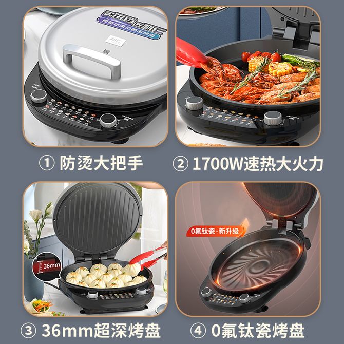 组合销售 产品介绍 产品规格 售后服务 产品咨询 发现好货 苏泊尔(SUPOR)电饼铛家用 双面加热煎饼铛煎烤机三明治机烙饼锅早餐机25mm加深烤盘火力可调JD31A847A 6500 里程 苏泊尔(SUPOR) 电饼铛 自动煎烤机 电火锅多功能 加大加深60mm双加热烙饼 锅面煎饼电饼档 两档火力 JT30A818 5700 里程 苏泊尔(SUPOR)电饼铛家用双面加热电饼档煎烤机烙饼机双面悬浮加热早餐机三明治机JJ30A648-Q 5400 里程 美的(Midea)电饼铛家用智能双面加热煎烤机烙饼机蛋饼机薄饼机煎饼烙饼锅JHN30F 4800 里程 小熊/Bear 八角电烤盘家用无烟电烤炉多功能烤涮电火锅烤肉锅 6500 里程