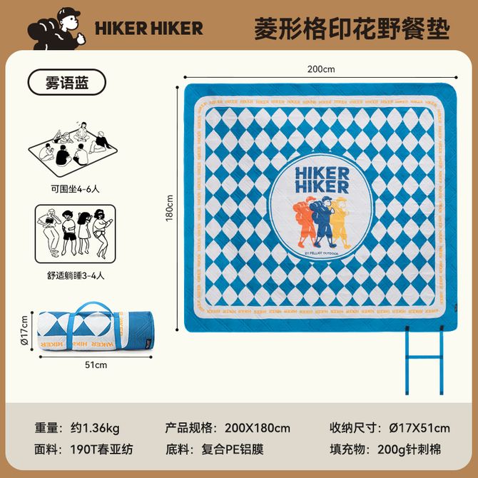伯希和 HIKER HIKER户外野餐垫露营加厚沙滩防潮垫(1.8M)便携超声波垫子菱形格印花野餐垫165028446 户外野餐垫露营加厚沙滩防潮垫(1.8M)便携超声波垫子菱形格印花野餐垫165028446 兑换价格 5900 里程 会员卡别 终身白金卡 白金卡 金卡 银卡 普通卡 儿童卡 服务 由 复梦户外用品店 发货并提供售后 颜色: 黄色 蓝色 购买数量: 件 库存件 配送地址: 立即购买 加入购物车 成功添加到购物车 关闭 购物车共有 种商品 总金额为: 组合销售 产品介绍 产品规格 售后服务 产品咨询 发现好货 创悦 防潮垫 户外便携加厚绒面双层野餐垫 1.5*2米 CY-5826小树叶 2200 里程 徽羚羊 户外防水牛津布2*2M野餐垫防潮垫帐篷内垫子地垫儿童爬爬垫 1500-2700 里程 探险者(TAN XIAN ZHE) 超声波野餐垫户外防潮垫加厚野餐布野炊露营郊游防水地席垫 【三层加厚】自然迷宫2m*2m 3000 里程 创悦 铝膜防潮垫 户外便携式野餐垫 三人帐篷用 2*2米 CY-5823 1700 里程 尙烤佳 野营垫便携防潮垫 星辰牛津布野餐垫 3500 里程