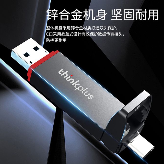 ThinkPlus 256G双接口固态U盘USB/Type-C读速高达550MB/S手机高速大容量办公优盘 TU205