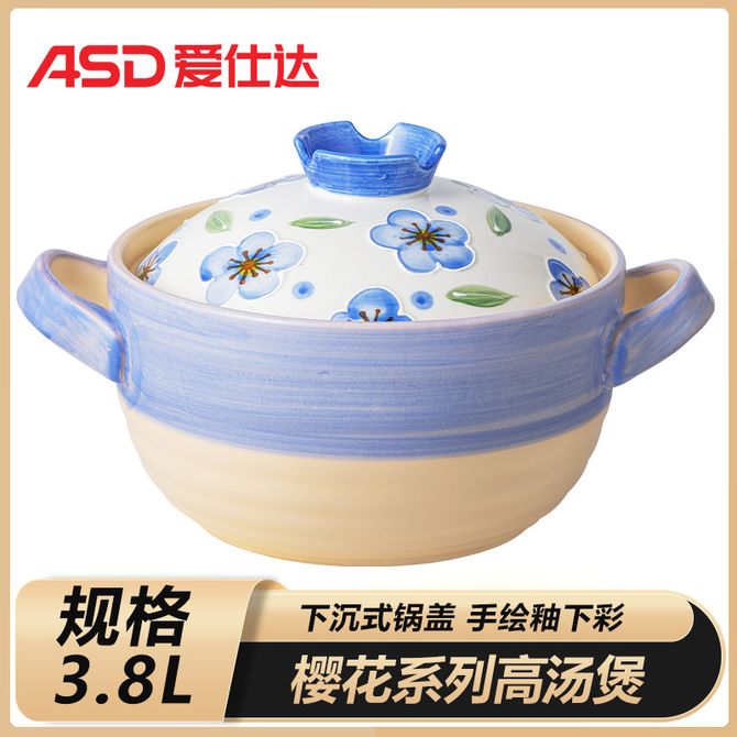 爱仕达/ASD 樱花系列高汤煲3.8L耐高温冷热不易开裂高颜值煲汤锅-RXC38P2Q 安全无铅镉 冷热不易裂 下沉式锅盖 手绘釉下彩 兑换价格 11700 里程 会员卡别 终身白金卡 白金卡 金卡 银卡 普通卡 儿童卡 服务 由 众生缘(江苏)互联网科技有限公司 发货并提供售后 颜色: 其他 购买数量: 件 库存件 配送地址: 立即购买 加入购物车 成功添加到购物车 关闭 购物车共有 种商品 总金额为: 组合销售 产品介绍 产品规格 售后服务 产品咨询 发现好货 荣事达/Royalstar 煲锅 砂锅煲汤熬药煮粥焖饭砂锅陶瓷炖汤沙锅家用养生汤锅瓦煲瓦罐4.6L 3900 里程 爱仕达(ASD) 煲锅 砂锅煲汤炖锅2.5L陶瓷煲仔饭砂锅燃气灶明火专用 4800 里程 炊大皇/Cookerking 砂锅5L耐高温陶瓷煲多用炖锅汤锅家用养生煲陶瓷锅明火煤燃气灶专用TCXW5002 4400 里程 炊大皇/Cookerking 砂锅 6L耐高温陶瓷煲多用炖锅汤锅 家用养生煲陶瓷锅 明火煤燃气灶专用TCXW6003 5300 里程 苏泊尔(SUPOR) 砂锅煲汤锅炖锅4.5L养生煲耐高温不开裂陶瓷煲EB45MAT01 6000 里程