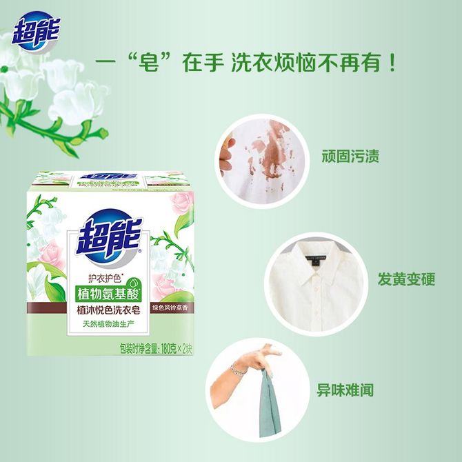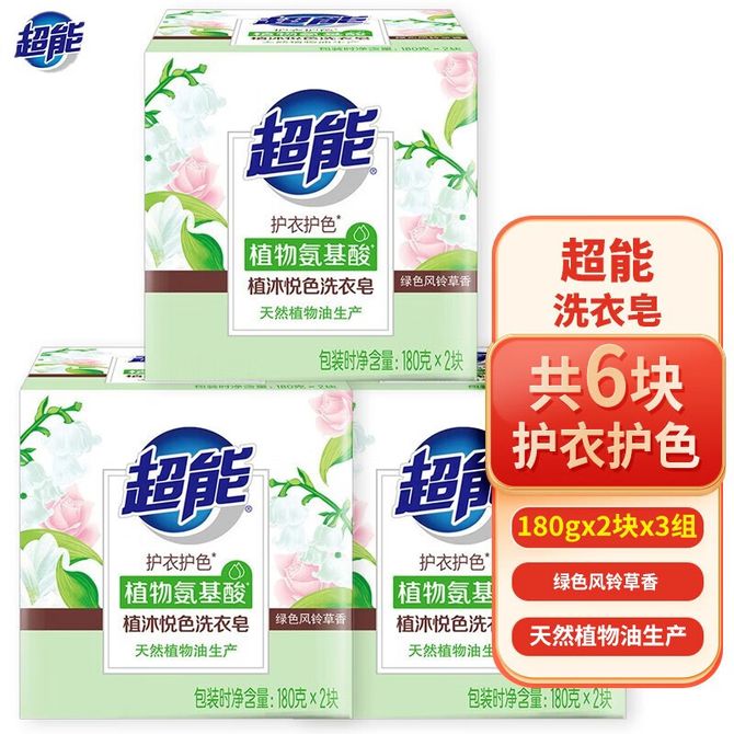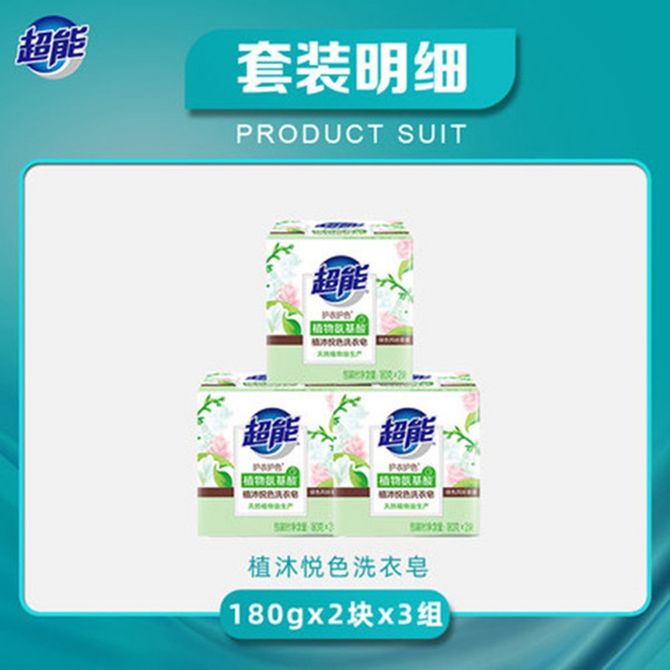 超能 植沐悦色洗衣皂180g*2*3组(到手6块)温和不刺激 专洗发黄发硬顽固污渍 护衣护色保护衣服本色 无磷配方 绿色环保 温和不伤手 兑换价格 1600 里程 会员卡别 终身白金卡 白金卡 金卡 银卡 普通卡 儿童卡 服务 由 京狮文化生活馆 发货并提供售后 净含量: 其他容量 清洁剂容量: 其他容量 购买数量: 件 库存件 配送地址: 立即购买 加入购物车 成功添加到购物车 关闭 购物车共有 种商品 总金额为: 组合销售 产品介绍 产品规格 售后服务 产品咨询 发现好货 蓝月亮 深层洁净洗衣液4斤 1kgx1瓶+500gx2补充装 薰衣草香 强效去渍 1500 里程 威露士/Walch La有氧洗洗衣液套装 4斤松木清香(瓶1L+袋500ml*2) 除菌除螨 1900 里程 蓝月亮 蓝月亮茉莉清香洁净洗衣液1kg*2 1400 里程 威露士 洗衣液除菌机洗手洗家用除螨去污1L*1瓶 1500 里程 蓝月亮 亮白增艳洗衣液2斤 1kg*1瓶 1100 里程