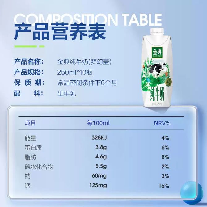伊利 金典纯牛奶梦幻盖250ml*10盒*2箱 3.8克优质蛋白 滴滴营养 兑换价格 6500 里程 会员卡别 终身白金卡 白金卡 金卡 银卡 普通卡 儿童卡 服务 由 澳菲类优选 发货并提供售后 规格: 组合 购买数量: 件 库存件 配送地址: 立即购买 加入购物车 成功添加到购物车 关闭 购物车共有 种商品 总金额为: 组合销售 产品介绍 产品规格 售后服务 产品咨询 发现好货 蒙牛 特仑苏纯牛奶苗条装250ml×12盒 2900 里程 三元 经典小方白全脂纯牛奶250ml*24盒牛奶 整箱 3400 里程 伊利金典纯牛奶250ml*12盒整箱 2200 里程 伊利 金典纯牛奶整箱 250ml*12盒 3.6g乳蛋白 原生高钙 礼盒装 1800 里程 特仑苏 新日期纯牛奶250ml*12盒 3.6g乳蛋白 礼盒装 京东/顺丰发货 2400 里程