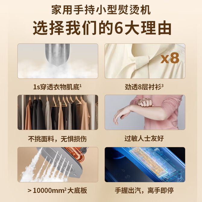 组合销售 产品介绍 产品规格 售后服务 产品咨询 发现好货 艾贝丽 手持挂烫机熨烫机 平挂两用家用电器便携蒸汽电熨斗烫衣机时尚熨衣机ABL-G212白色 5200 里程 小米 米家手持挂烫机 蒸汽电熨斗熨烫机 家用便携 除菌除螨 除皱不伤衣 5700 里程 小熊/Bear 挂烫机家用熨斗小型熨烫机家用手持挂烫机蒸汽熨斗电熨斗 GTJ-D10M1 3700 里程 苏泊尔(SUPOR) 挂烫机家用小型电熨斗便携式可折叠旅行熨烫机强蒸汽手持迷你烫衣机GT70AX-12 浅蓝色 4400 里程 海尔 手持挂烫机 家用熨烫机蒸汽熨斗 便携式烫衣服神器 HY-GW2502W 4800 里程