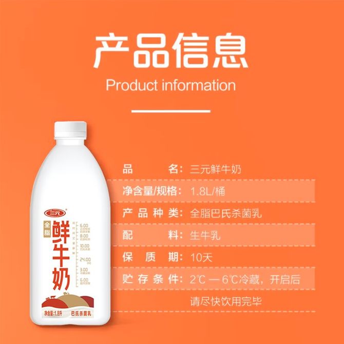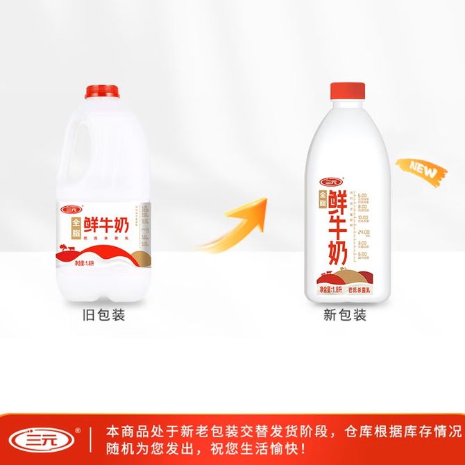 三元(SAN YUAN) 全脂 鲜牛奶 1.8L 大桶家庭装 巴氏杀菌 早餐搭档 营养早餐搭配乳蛋白 兑换价格 1800 里程 会员卡别 终身白金卡 白金卡 金卡 银卡 普通卡 儿童卡 服务 由 南美进口馆 发货并提供售后 规格: 组合 购买数量: 件 库存件 配送地址: 立即购买 加入购物车 成功添加到购物车 关闭 购物车共有 种商品 总金额为: 组合销售 产品介绍 产品规格 售后服务 产品咨询 发现好货 蒙牛 特仑苏纯牛奶苗条装250ml×12盒 2900 里程 三元 经典小方白全脂纯牛奶250ml*24盒牛奶 整箱 3400 里程 伊利金典纯牛奶250ml*12盒整箱 2200 里程 伊利 金典纯牛奶整箱 250ml*12盒 3.6g乳蛋白 原生高钙 礼盒装 1800 里程 特仑苏 新日期纯牛奶250ml*12盒 3.6g乳蛋白 礼盒装 京东/顺丰发货 2400 里程