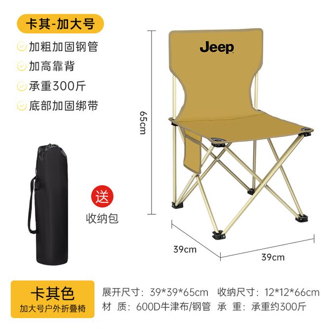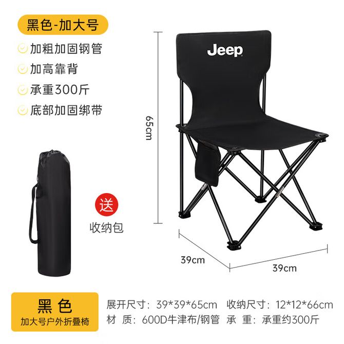 Jeep 户外轻便露营便携折叠椅 39*39*65cm 加大号 (多色可选) 加大号,展开尺寸约39*39*65cm/收纳尺寸约15*15cm*62cm,多色可选 兑换价格 1300 里程 会员卡别 终身白金卡 白金卡 金卡 银卡 普通卡 儿童卡 服务 由 至恩户外运动专营店 发货并提供售后 颜色: 白色 黑色 卡其色 购买数量: 件 库存件 配送地址: 立即购买 加入购物车 成功添加到购物车 关闭 购物车共有 种商品 总金额为: