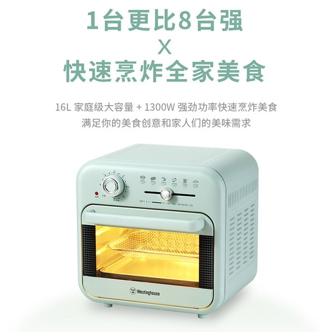 西屋/Westinghouse 家用空气炸烤箱16L大容量多功能全自动电炸锅薯条机 3D热风脱脂烤,可视玻璃门 16L家庭容量,70-230°C广域温区,60分钟长定时,3D热风脱脂烤,可视玻璃门 兑换价格 17400 里程 会员卡别 终身白金卡 白金卡 金卡 银卡 普通卡 儿童卡 服务 由 北京致诚博雅贸易有限公司 发货并提供售后 颜色: 其他 购买数量: 件 库存件 配送地址: 立即购买 加入购物车 成功添加到购物车 关闭 购物车共有 种商品 总金额为: