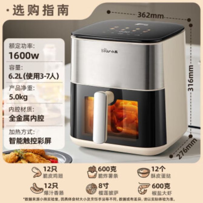 小熊/Bear 空气炸锅QZG-H16T5 不用翻面 双档风速金属内腔 6.2L家用大容量蒸汽嫩炸 1600W可视炸烤一体机 不用翻面 双档风速金属内腔 6.2L家用大容量蒸汽嫩炸 1600W可视炸烤一体机 兑换价格 17400 里程 会员卡别 终身白金卡 白金卡 金卡 银卡 普通卡 儿童卡 服务 由 纳华优选 发货并提供售后 颜色: 米白 购买数量: 件 库存件 配送地址: 立即购买 加入购物车 成功添加到购物车 关闭 购物车共有 种商品 总金额为:
