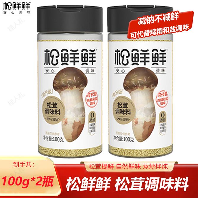 松鲜鲜 松茸调味料100g*2瓶 代替盐鸡精味精 家用厨房烹饪调味料 炒菜烹饪炖汤调味品 用松茸调味料 可代替盐、味精、鸡精调味 兑换价格 1400 里程 会员卡别 终身白金卡 白金卡 金卡 银卡 普通卡 儿童卡 服务 由 广西桂人礼互联网科技有限公司 发货并提供售后 规格: 瓶装 购买数量: 件 库存件 配送地址: 立即购买 加入购物车 成功添加到购物车 关闭 购物车共有 种商品 总金额为: