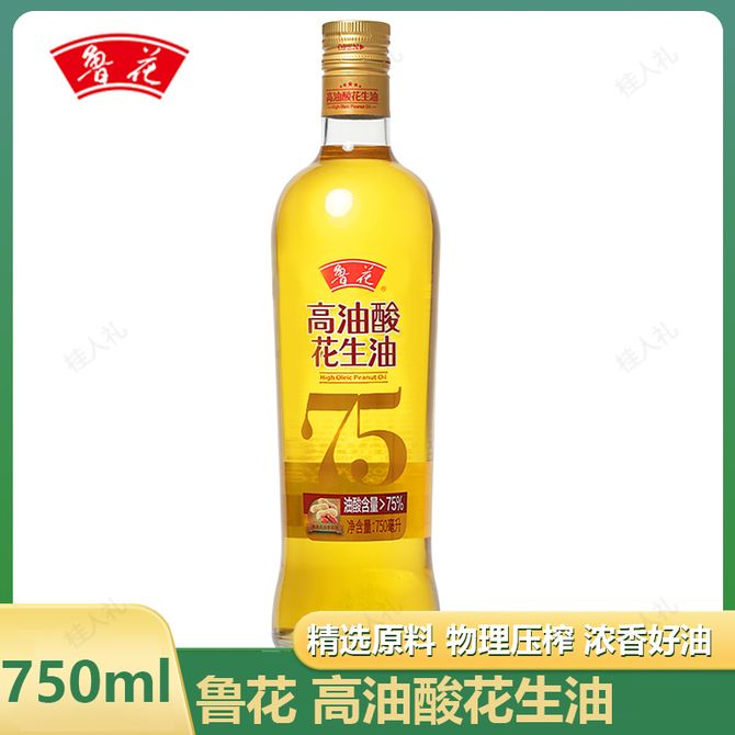 鲁花 高油酸花生油750ml 5S压榨花生油 高油酸健康花生油