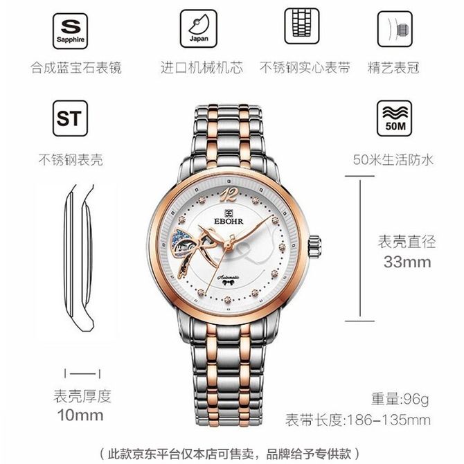 依波表/EBOHR 女士镂空全自动机械表 钢带防水镶钻夜光腕表 女士手表 间枚蝴蝶结 51000127 21钻进口机械机心 玫瑰金钢带 亲肤显白 锆钻镶嵌 闪耀动人 50米生活防水 人工蓝宝石玻璃镜面 兑换价格 64400 里程 会员卡别 终身白金卡 白金卡 金卡 银卡 普通卡 儿童卡 服务 由 深圳市长平网络科技有限公司 发货并提供售后 颜色: 其他 购买数量: 件 库存件 配送地址: 立即购买 加入购物车 成功添加到购物车 关闭 购物车共有 种商品 总金额为: