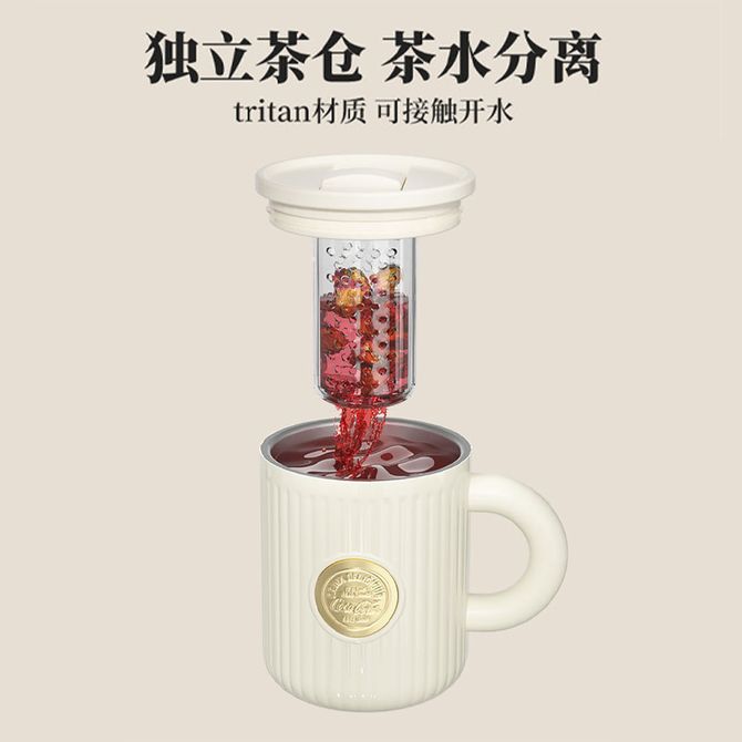 格沵/germ 可口可乐保温马克杯女便携随手杯茶水分离水杯450毫升 雪融白
