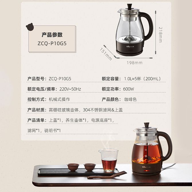 小熊/Bear 煮茶器1L容量养生壶 蒸汽喷淋式电水壶 304不锈钢小型办公室全自动泡茶炉电热烧水壶 304不锈钢安心材质 可拆式茶水分离滤网 高硼硅玻璃 兑换价格 3900 里程 会员卡别 终身白金卡 白金卡 金卡 银卡 普通卡 儿童卡 服务 由 北京致诚博雅贸易有限公司 发货并提供售后 颜色: 其他 购买数量: 件 库存件 配送地址: 立即购买 加入购物车 成功添加到购物车 关闭 购物车共有 种商品 总金额为: