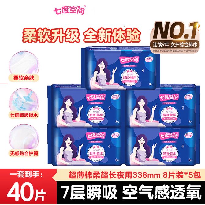 七度空间 优雅系列纯棉夜用组合共40片(338mm*8片*5包)亲肤柔软七层锁水姨妈巾 (随机混发,到手总片数不变,介意慎拍)亲肤柔软,七层锁水姨妈巾 兑换价格 1900 里程 会员卡别 终身白金卡 白金卡 金卡 银卡 普通卡 儿童卡 服务 由 京狮文化生活馆 发货并提供售后 包装数量: 5包独立装 购买数量: 件 库存件 配送地址: 立即购买 加入购物车 成功添加到购物车 关闭 购物车共有 种商品 总金额为: 组合销售 产品介绍 产品规格 售后服务 产品咨询 发现好货 维达卷纸 卫生纸实惠装厕纸家用厕所纸巾手纸整箱批有芯大卷家庭装 1200-2300 里程 维达 Vinda 卷纸 140g/卷*10卷 蓝色经典3层卫生纸 1300 里程 心相印抽纸 茶语丝享系列 量贩家庭装 3层*100抽*4包(茶香 压花) 1100 里程 心相印 经典系列 二层面巾纸 180抽*6包*1提 1100 里程 维达Vinda 超韧系列抽纸(3层*130抽*6包) 原生木浆卫生餐巾纸婴儿面巾纸 6包优惠装 1100 里程