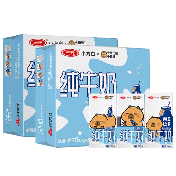 三元(SAN YUAN) 两提200毫升242盒小方白纯牛奶 营养早餐搭配乳蛋白 兑换价格 4500 里程 会员卡别 终身白金卡 白金卡 金卡 银卡 普通卡 儿童卡 服务 由 南美进口馆 发货并提供售后 规格: 组合 购买数量: 件 库存件 配送地址: 立即购买 加入购物车 成功添加到购物车 关闭 购物车共有 种商品 总金额为: 组合销售 产品介绍 产品规格 售后服务 产品咨询 发现好货 蒙牛 特仑苏纯牛奶苗条装250ml×12盒 2900 里程 三元 经典小方白全脂纯牛奶250ml*24盒牛奶 整箱 3400 里程 伊利金典纯牛奶250ml*12盒整箱 2200 里程 伊利 金典纯牛奶整箱 250ml*12盒 3.6g乳蛋白 原生高钙 礼盒装 1800 里程 特仑苏 新日期纯牛奶250ml*12盒 3.6g乳蛋白 礼盒装 京东/顺丰发货 2400 里程
