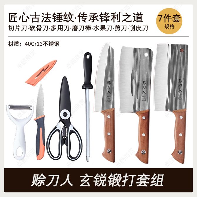 赊刀人 古法锤纹七件套家用厨房刀具套装 切菜 切肉 磨刀 削皮 剪骨SDRDY1191 古法锤纹七件套 持久锋利 握感舒适 优选钢材 一体成型 容易清洗 兑换价格 3900 里程 会员卡别 终身白金卡 白金卡 金卡 银卡 普通卡 儿童卡 服务 由 卓鹏商贸生活馆 发货并提供售后 颜色: 其他 购买数量: 件 库存件 配送地址: 立即购买 加入购物车 成功添加到购物车 关闭 购物车共有 种商品 总金额为: