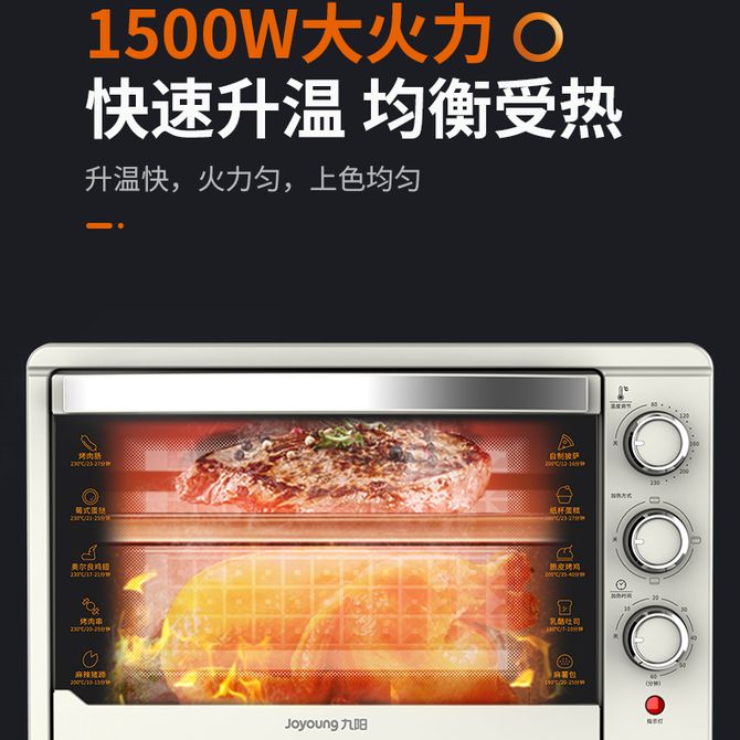 九阳/Joyoung 电烤箱30L大容量 家用多功能烘焙定时控温可视披萨红薯烤炉箱旋钮控制易操作烤箱 30L家庭容量,上下独立加热,旋钮控制易操作,1500W大火力 兑换价格 11700 里程 会员卡别 终身白金卡 白金卡 金卡 银卡 普通卡 儿童卡 服务 由 北京致诚博雅贸易有限公司 发货并提供售后 颜色: 其他 购买数量: 件 库存件 配送地址: 立即购买 加入购物车 成功添加到购物车 关闭 购物车共有 种商品 总金额为: 组合销售 产品介绍 产品规格 售后服务 产品咨询 发现好货 美的/Midea 空气炸锅 5L可视窗口免翻面电炸锅 双旋钮控时控温 食品接触不粘涂层 MF-KZE5089 8700 里程 荣事达5.5L大容量 家用智能触控多功能空气炸锅 RS-AF181L 10900 里程 美的/Midea 空气炸锅 5L家用大容量 可视窗口 免翻面 蒸汽嫩炸 金属内腔 多功能智能精准控温 电炸锅KZC5089 5L 10700 里程 美菱/MELNG 空气炸锅家用大容量炸锅6L智能控温不粘内胆MZG-503 机械款 7000 里程 苏泊尔(SUPOR) 空气炸锅 5.3L 电炸锅家用炸鸡薯条机蒸汽嫩炸大容量薯条机可视化空气炸锅 KJ53D800A 8300 里程