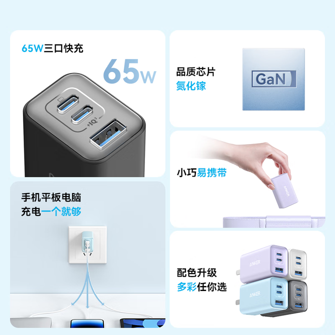 安克/Anker 65W氮化镓充电器 Type-C口充电折叠单头 蓝色标配单头 适用苹果16/15华为小米荣耀笔记本手机平板电脑 兑换价格 5700 里程 会员卡别 终身白金卡 白金卡 金卡 银卡 普通卡 儿童卡 服务 由 会天伦3C专营店 发货并提供售后 插口: 多口 购买数量: 件 库存件 配送地址: 立即购买 加入购物车 成功添加到购物车 关闭 购物车共有 种商品 总金额为: